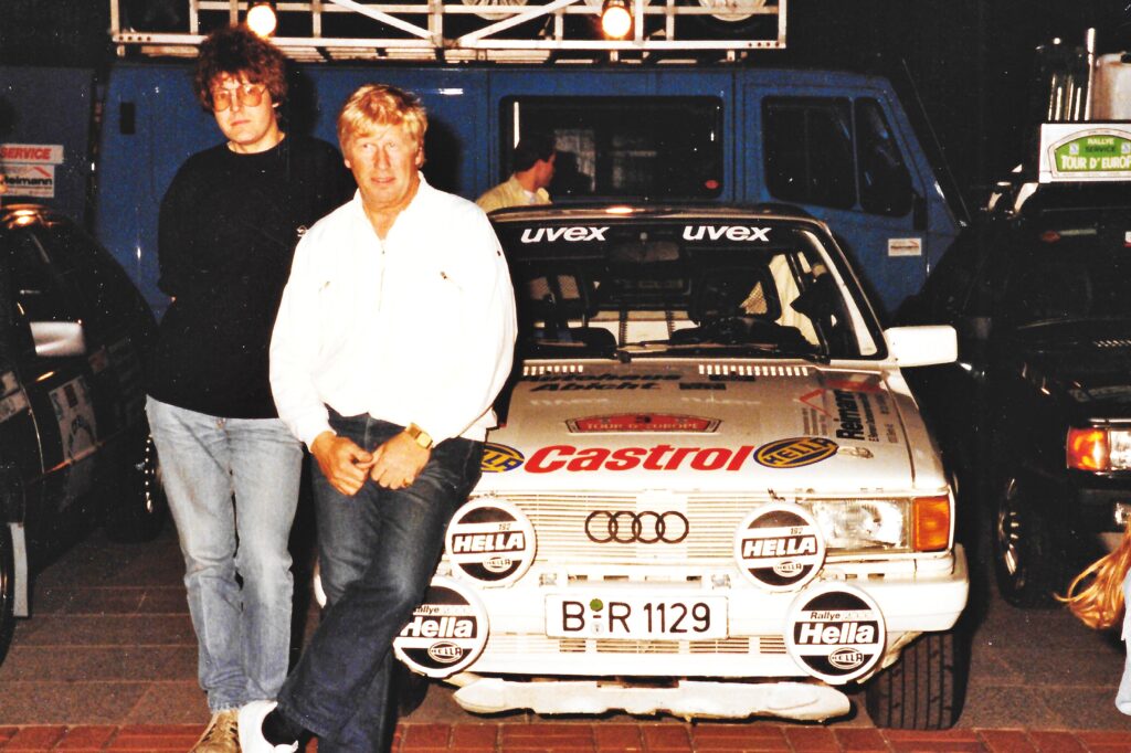 1981 wurde er aufgrund seiner zahlreichen Titel als Berliner Rallye-Meister in das neu gegründete HELLA-Rallye-Team aufgenommen. Ab der DMV-Herbstfahrt 1981 übernahm unser Sportleiter Reinhard-Holger Unnasch den Beifahrersitz neben Egon. Bis Ende der 80er-Jahre bildeten die beiden ein festes Team und waren eine nicht wegzudenkende Größe in der Norddeutschen Rallye-Meisterschaft. Im Jahr 1985 war Egon mit einem Opel Manta der Fa. Opel Semdner unterwegs, ab 1986 folgte man dem Trend zum Allrad und ein Audi 80 quattro kam ins Haus. Auch hiermit konnte Egon große Erfolge erzielen. Zwei Mal war er damit bei der Rallye Tour d´Europe unterwegs. 1986 konnte nach rund 8000 Km in 9 Tagen durch 10 Länder der 2. Platz belegt werden, 1987 endete die Fahrt leider nach knapp 6.000 Km und in Führung liegend damit, daß der Quattro wegen eines schleichenden Plattfußes 8 Meter tief von einer Brücke stürzte. Besatzung okay, Auto kaputt,- schade, die 2.000 noch fehlenden Kilometer hätte man sonst auch noch locker geschafft.