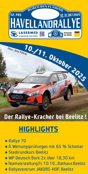 52. PRS Havellandrallye Hallo liebe Teilnehmer! Hier findet ihr erste Infos und die Ausschreibung als PDF.Die Online Nennung ist ab dem 8. August möglich. Online Nennportal
